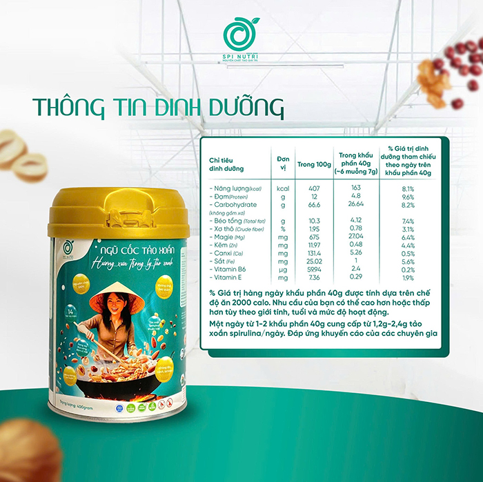 Giá niêm yết Ngũ Cốc Tảo Xoắn: 380.000đ/1 hộp 400g